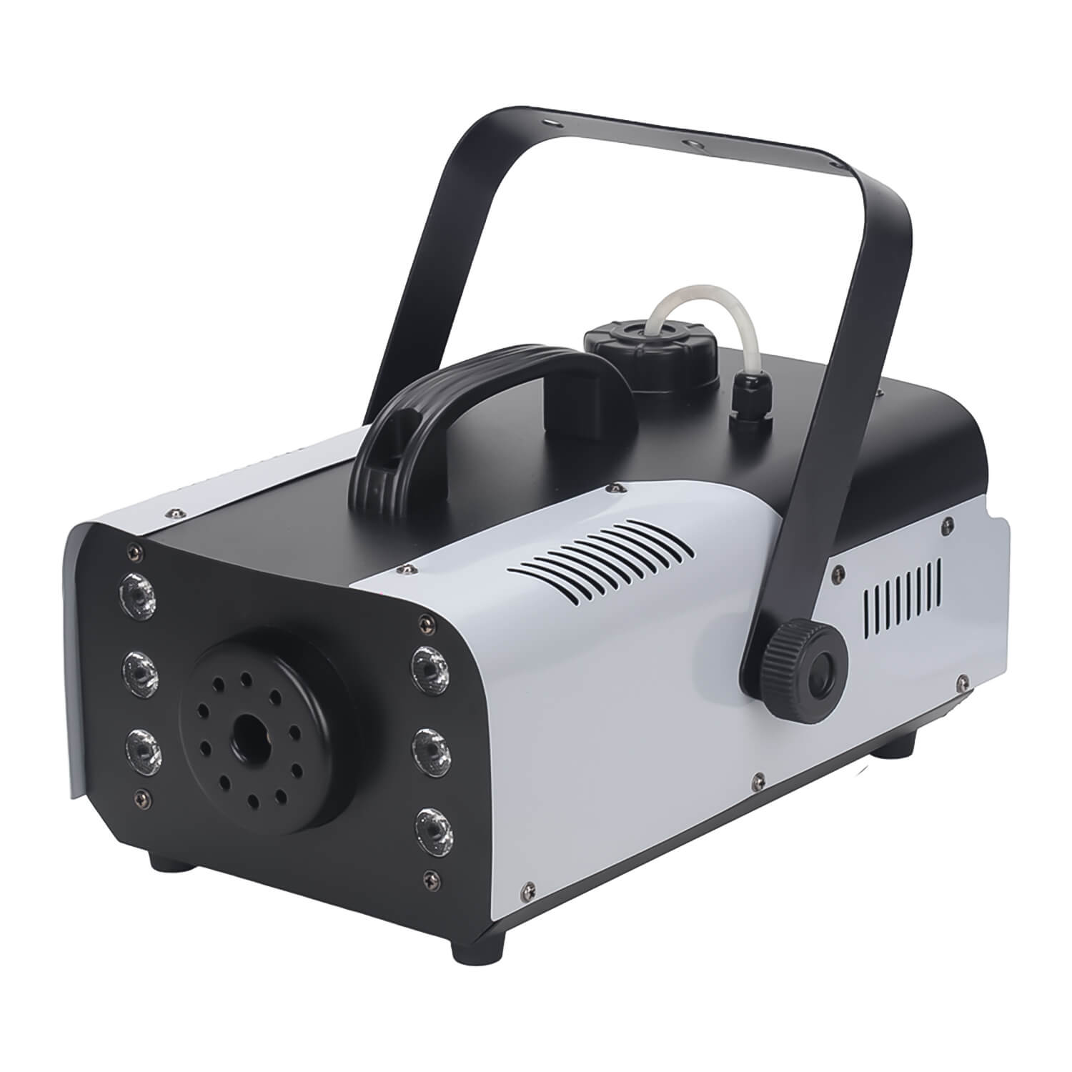 Компактный генератор дыма мощностью 900 Вт, дающий интенсивное и равномерное распределение дыма в помещении. Оснащен пультом дистанционного управления и проводным пультом. Дым-машина оснащена шестью RGB светодиодами, которые подсвечивают дым в момент его подачи, что делает эффект более ярким и красочным. Металлический нержавеющий корпус.