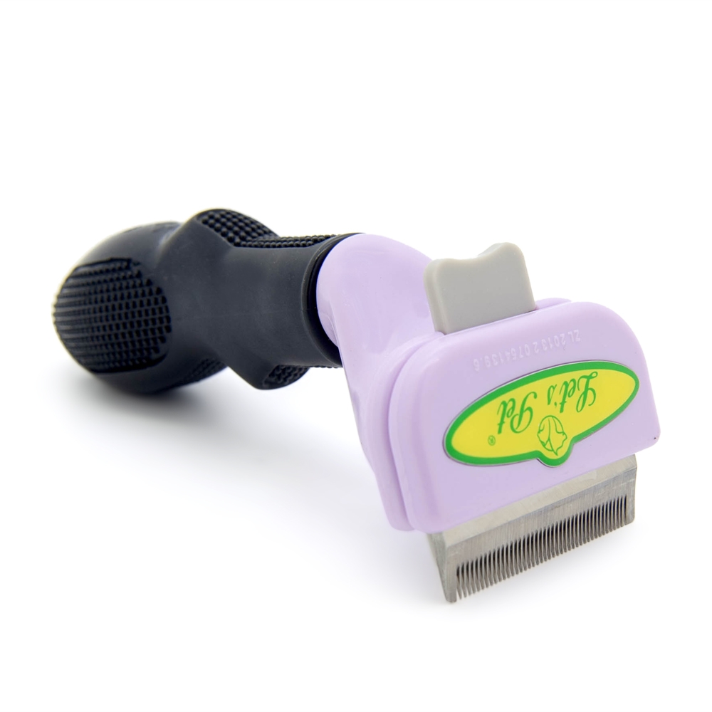 Щетка-триммер для ухода за шерстью длинношерстных собак и кошек. Рабочая часть из нержавеющей стали соединена с удобной пластиковой рукоятью. Щетка имеет специальное приспособление для очистки рабочей части от скопившейся шерсти. Ширина рабочей части соответствует размеру S.